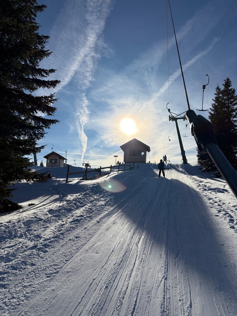 Am Mittwoch, dem 14.01. machten sich 17 begeisterte Schifahrerinnen und Schifahrer mit fünf Begleitpersonen mit dem Bus auf die Weinebene. Der Schitag begann mit strahlendem Sonnenschein und einem tiefblauen Himmel, der sofort Lust auf die Piste machte. Die frische Bergluft und das Knirschen unter den Skiern sorgten für echte Winterfreude. Die Pisten waren griffig und nahezu menschenleer. Natürlich durfte die verdiente Pause in der Hütte nicht fehlen.
