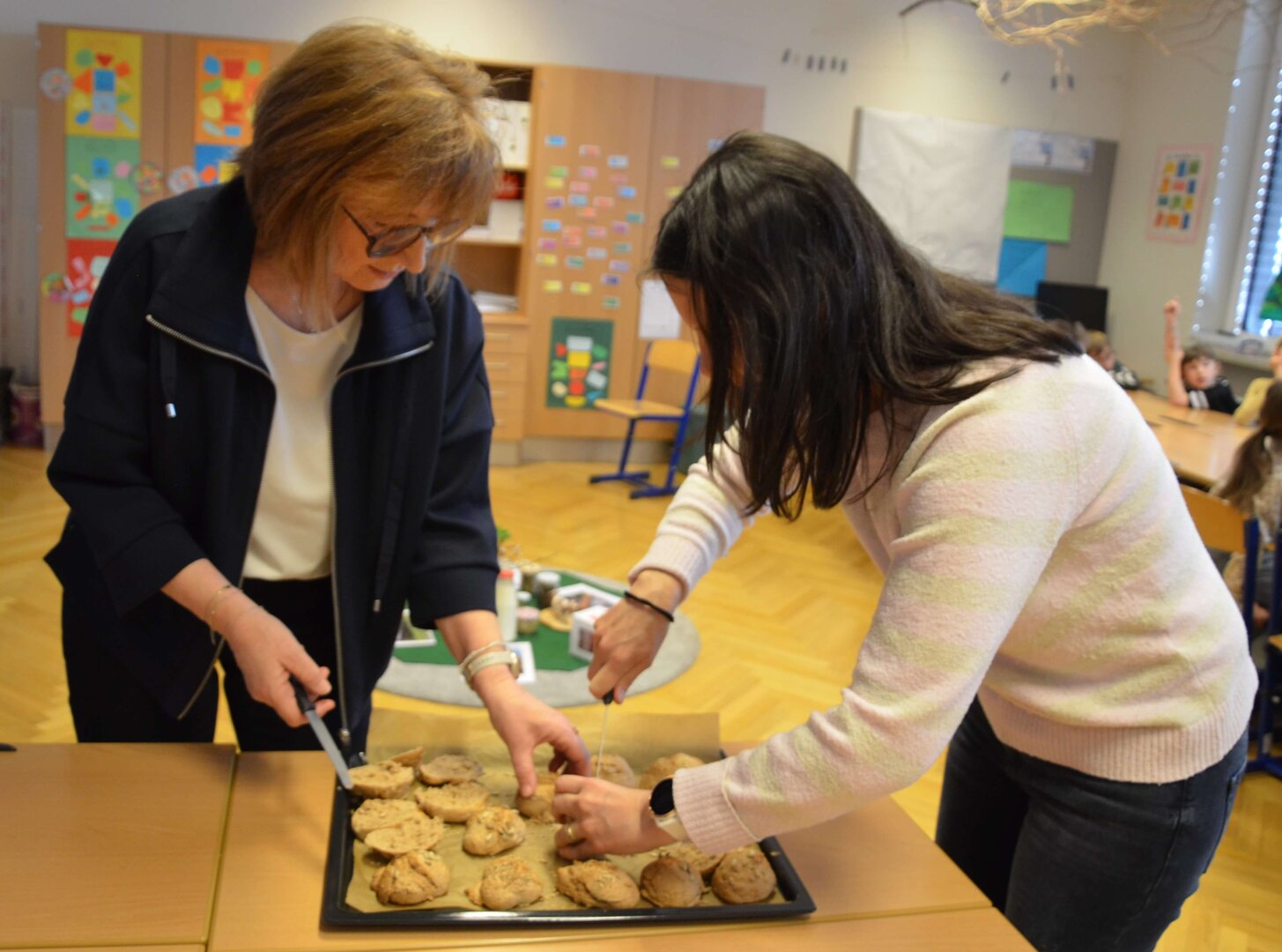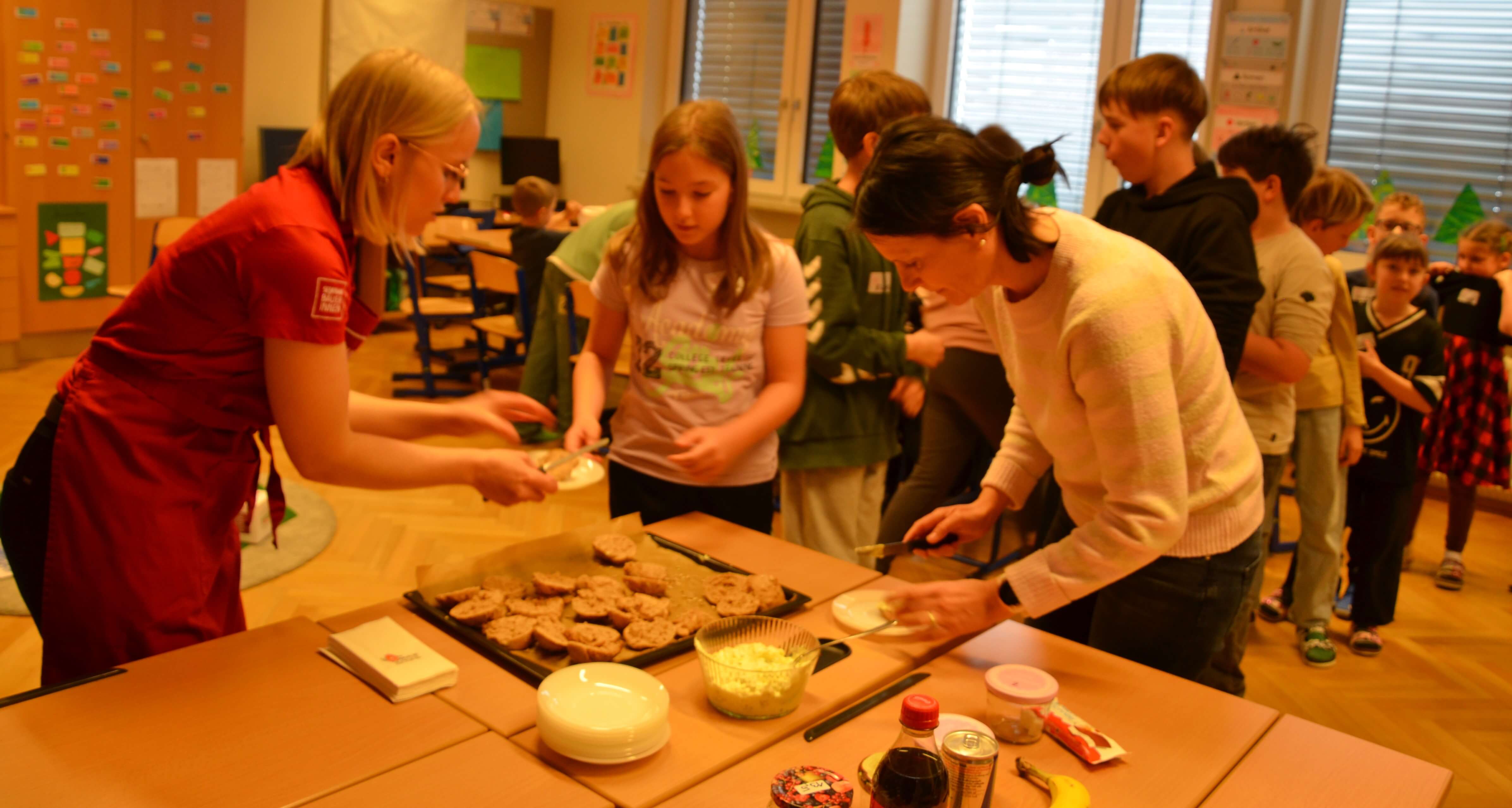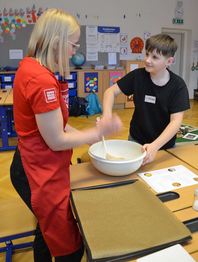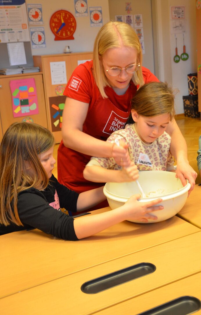 Zu unserem Schwerpunkt “Gesund lernen lehren leben” besuchten uns die Seminarbäuerinnen am 20.03.2026 und arbeiteten mit den Kindern zum Thema “Gesunde Jause” sowohl theoretisch als auch praktisch Wichtiges durch. Mit viel Begeisterung wurde geschnipselt, gemörsert, geknetet, gebacken und natürlich durften die selbstgemachten Köstlichkeiten im Anschluss verspeist werden.