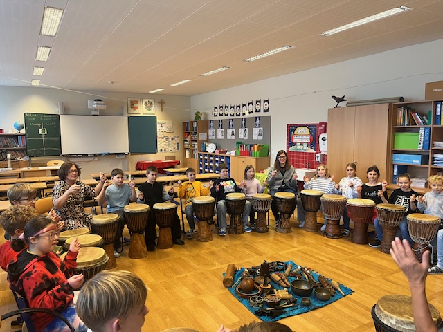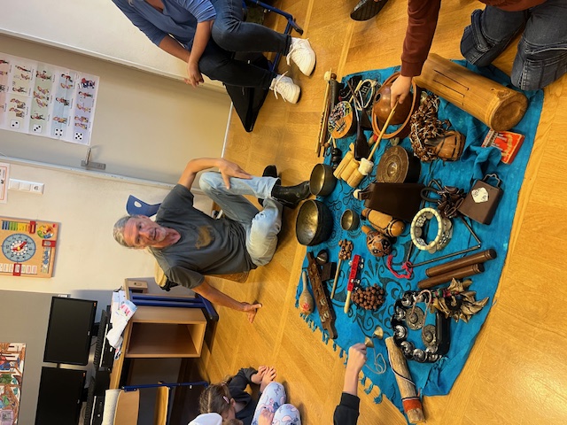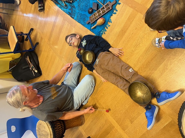 Am 5. November besuchte der Musiktherapeut Robert Dobernig unsere Schule. Gemeinsam wurde mit großer Begeisterung an den vielen verschiedenen Trommeln und Rhythmusinstrumenten musiziert.