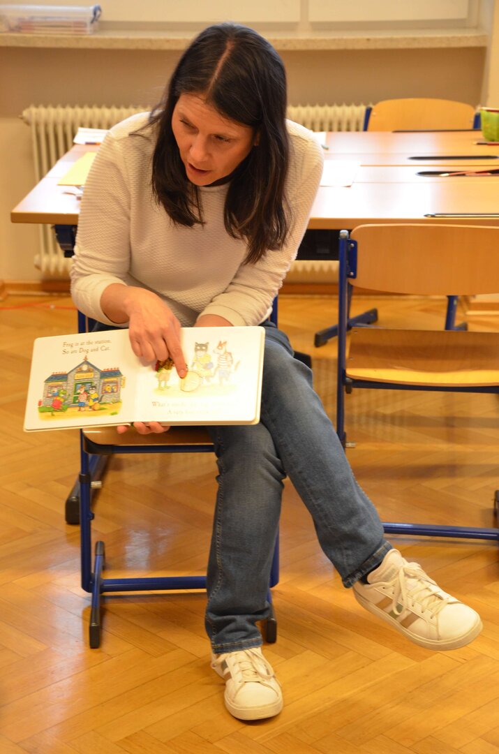 3. Vorlesestation: Frau Lehrerin Esther Kosutnik-Striedner trug das englische Buch “Frog´s day out” vor. Anschließend erhielten die Schulkinder altersentsprechend differenzierte Festigungsübungen.